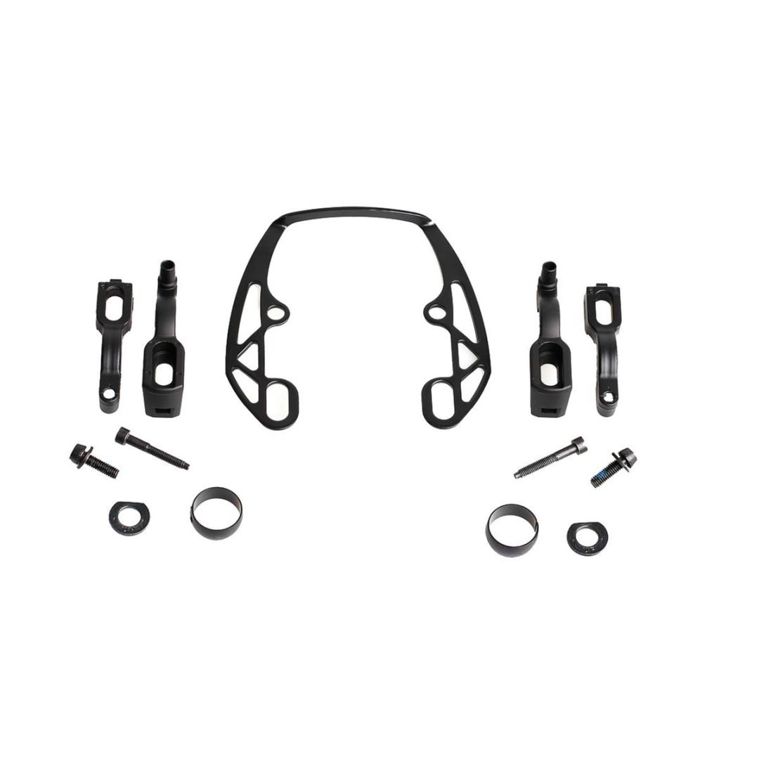De EVO2-adapter combineert flexibiliteit met gebruiksgemak door de grote bewegingsvrijheid die een nauwkeurige uitlijning van de remcilinder mogelijk maakt. De adapter wordt geleverd met een EVO2-montageplaat die zorgt voor een stevige bevestiging. Dankzij de zelfvormende M5x33 schroeven kun je de adapter direct monteren zonder vooraf een draad te tappen, wat installatie versnelt en het risico op beschadiging minimaliseert. Dit maakt de adapter een slimme keuze voor elke rijder die zijn remmen wil optimaliseren.