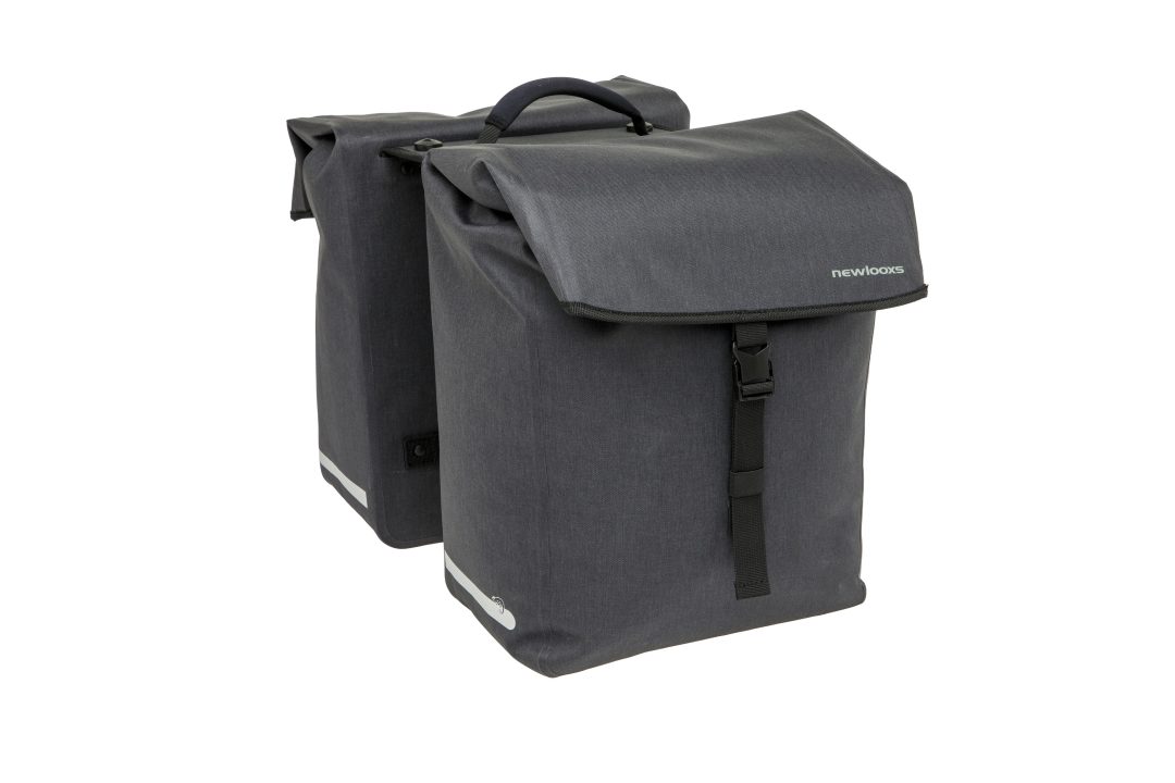 Met de New Looxs fietstas dubbel Hamar anthracite MIK 38L geniet je van ruime opslagcapaciteit en duurzame waterdichte materialen, perfect afgestemd op de behoeften van elektrische fietsers. Dankzij de voorgemonteerde MIK 2.0 adapter bevestig je de tas eenvoudig en stevig op je bagagedrager, zonder gedoe. Gemaakt van gerecycled polyester combineert deze tas milieubewustzijn met functionaliteit, zodat je al je spullen veilig en droog meeneemt, ongeacht het weer.