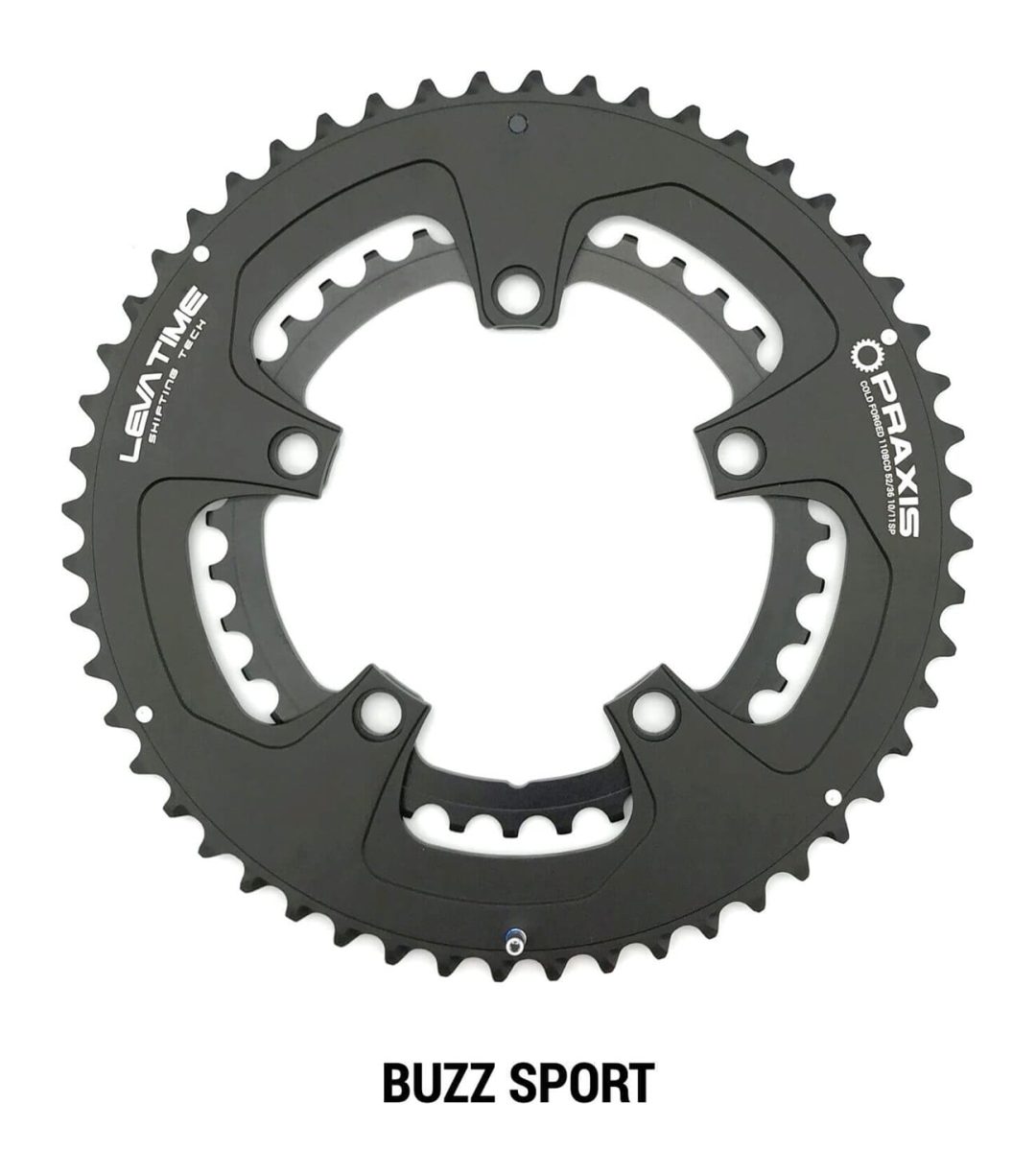 Het Praxis kettingblad Buzz Sport 110BCD 48/32t zwart combineert hoogwaardige cold forged CNC-freesbewerking met een innovatieve LevaTime technologie, waardoor elke tand een unieke vorm heeft die het schakelen aanzienlijk verbetert. Dit kettingblad is speciaal ontwikkeld voor gebruik met de nieuwste schakelsystemen zoals Di2, EPS en eTap, en is compatibel met Shimano, SRAM en Campagnolo. De meegeleverde vervangbare kettingopvangpin verhoogt de duurzaamheid en gebruiksvriendelijkheid. Let op: de 48/32 variant is exclusief geschikt voor Praxis 110BCD cranks en vereist speciale boutjes, en is niet compatibel met oudere Praxis Turn modellen of andere merken cranks.