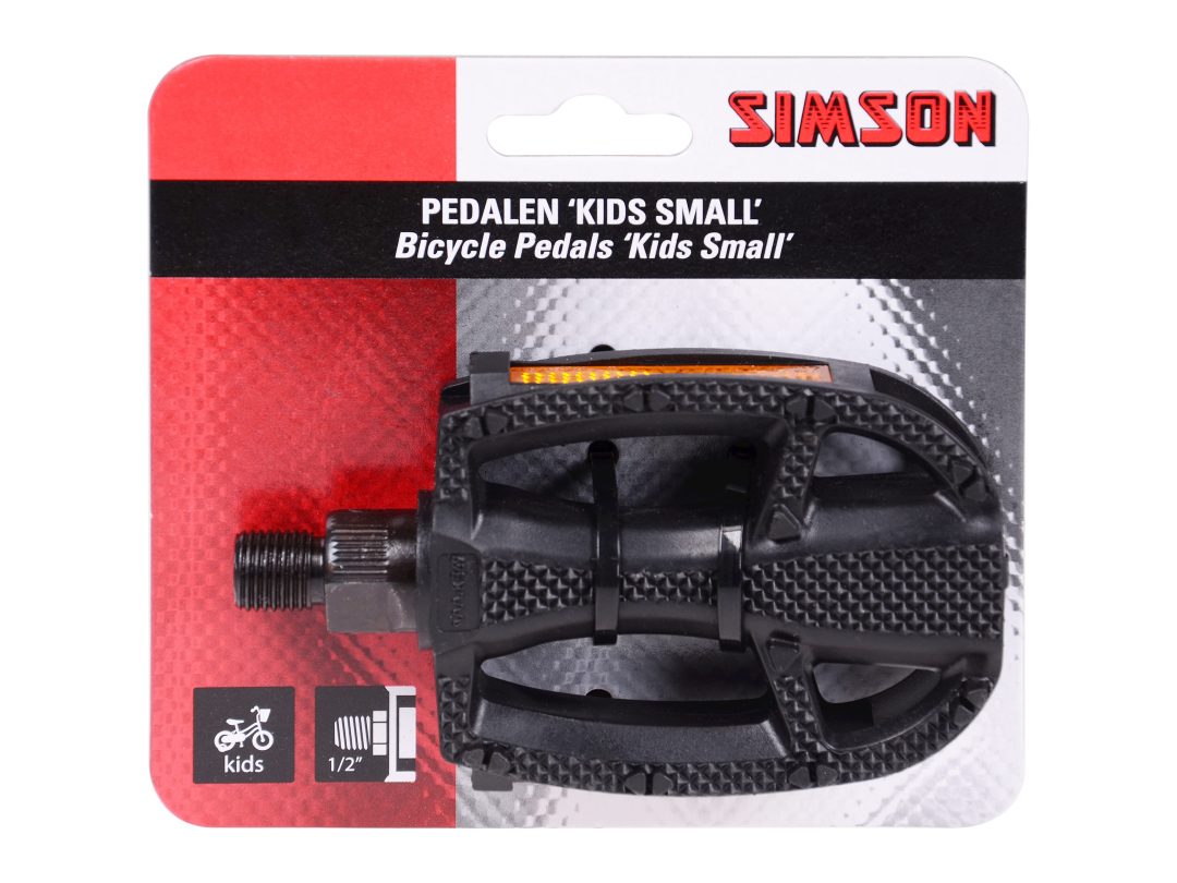 Simson pedalen Kids small zorgen voor een soepele en lichte trapbeweging, perfect afgestemd op de kracht en het ritme van kinderen. Dankzij het antislip oppervlak blijven kinderschoenen stevig op hun plek, wat zorgt voor extra grip en vertrouwen tijdens het fietsen. De geïntegreerde reflectoren aan beide zijden verhogen de zichtbaarheid in het verkeer, waardoor jonge fietsers veiliger onderweg zijn. Met de 1/2 schroefdraad zijn deze pedalen eenvoudig te monteren op vrijwel alle kinderfietsen, zeker in combinatie met een Simson pedaalsleutel. Zo wordt fietsen leuker én veiliger.