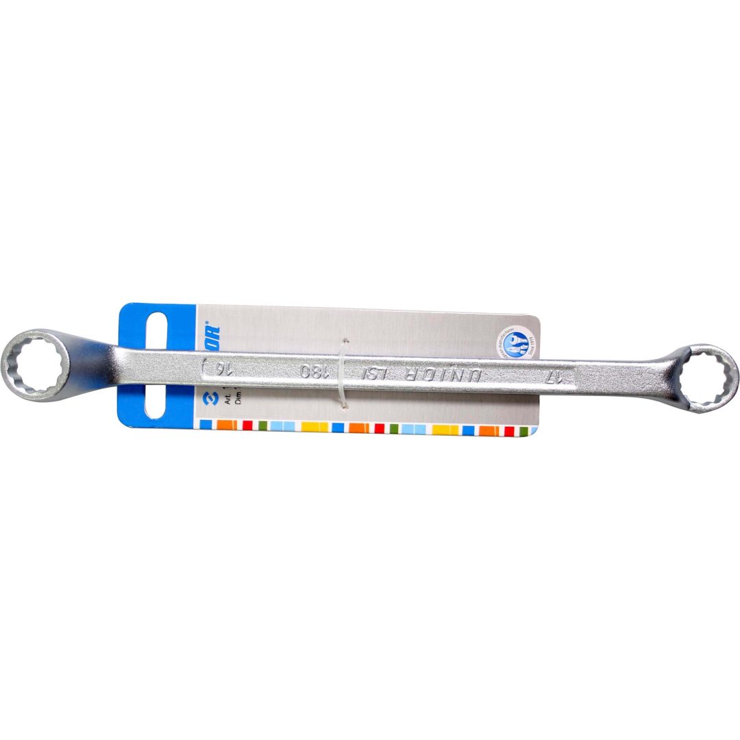 De Unior ringsleutel 16-17 onderscheidt zich door zijn ergonomische ontwerp dat zorgt voor een comfortabele grip en optimale krachtsoverdracht. Dankzij de precies gefreesde ringen wordt de kans op afronding van moeren en bouten aanzienlijk verminderd. Het hoogwaardige staal garandeert een uitstekende duurzaamheid en weerstand tegen slijtage, waardoor deze sleutel een betrouwbare partner is bij elke reparatie of montageklus.